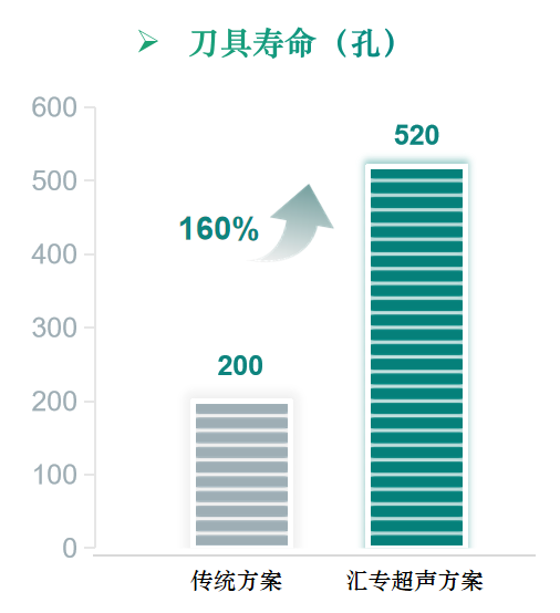 高效飞速PCD钻头更耐磨,超声加工模式下可稳定加工520个孔,刀具寿命提升160%