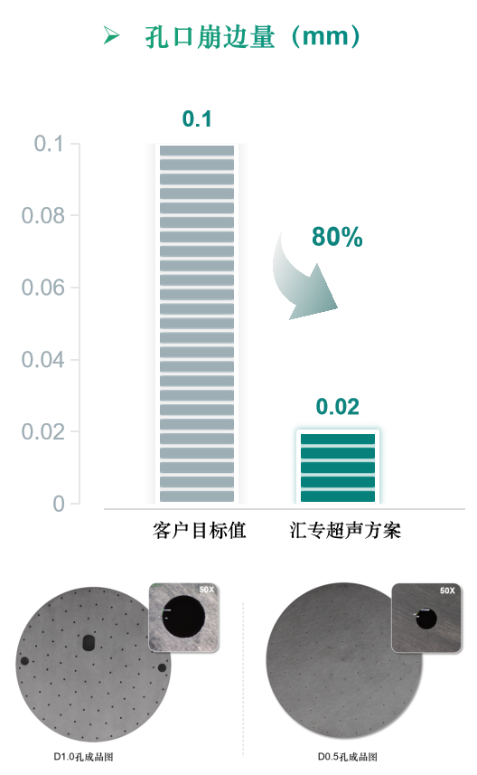 汇专超声方案加工,D1.0孔垂直度优于目标值34%,D0.5孔垂直度优于目标值22%