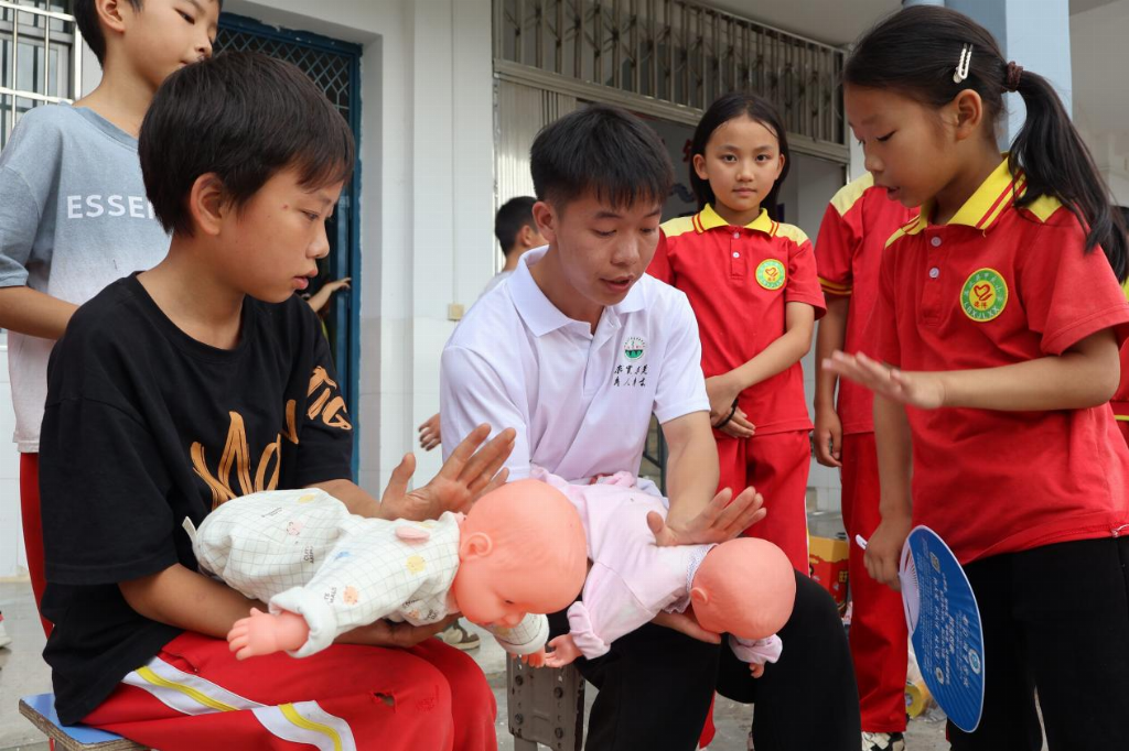 针对荔波山区儿童户外活动多、意外伤害风险高的特点,实践团开展“精准急救进课堂”活动。除常规的心肺复苏、海姆利克急救法外,志愿者结合当地实际,重点讲解“被马蜂蜇伤的应急处理”“山路摔伤后的初步固定”等实用技能,