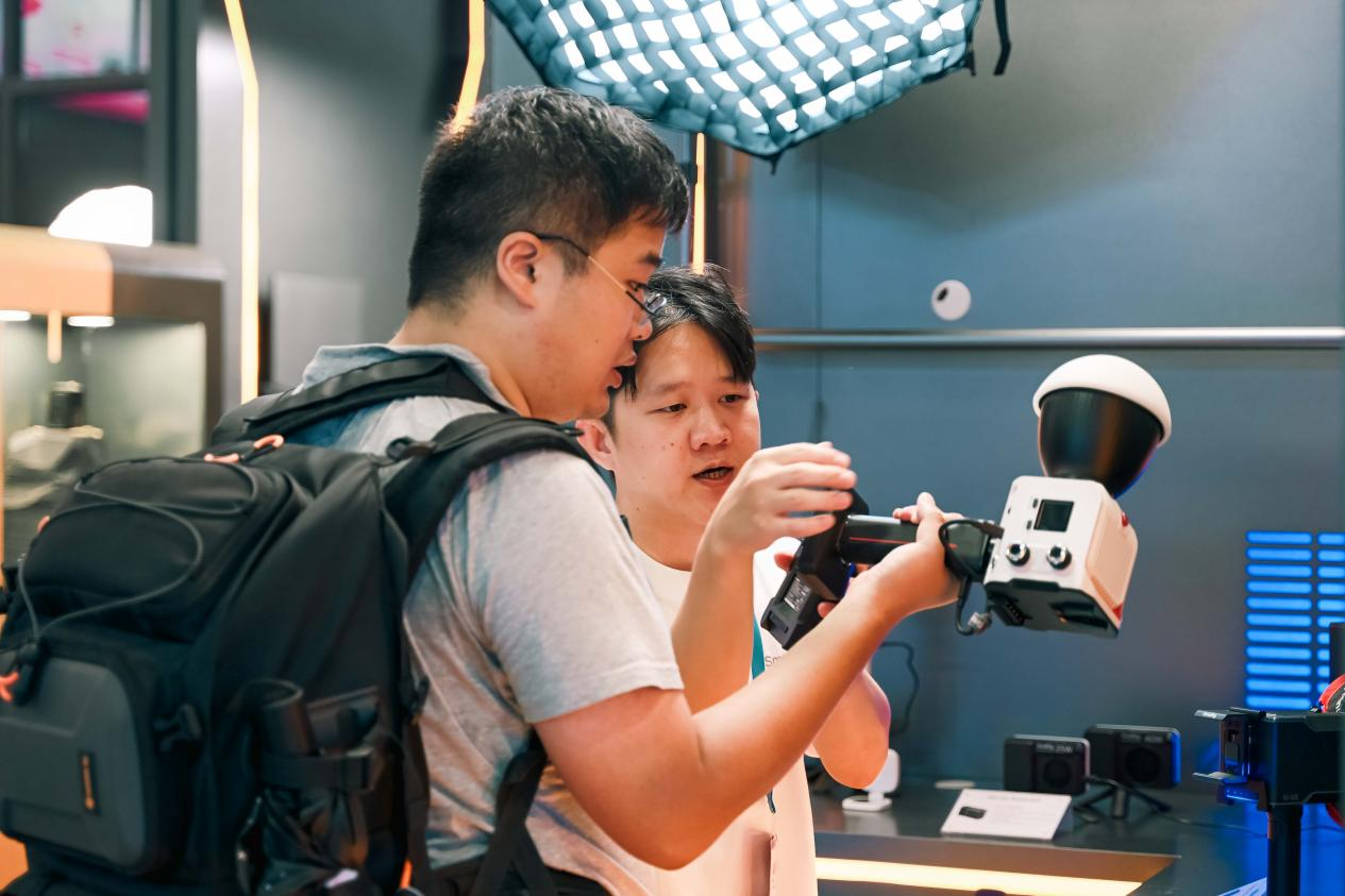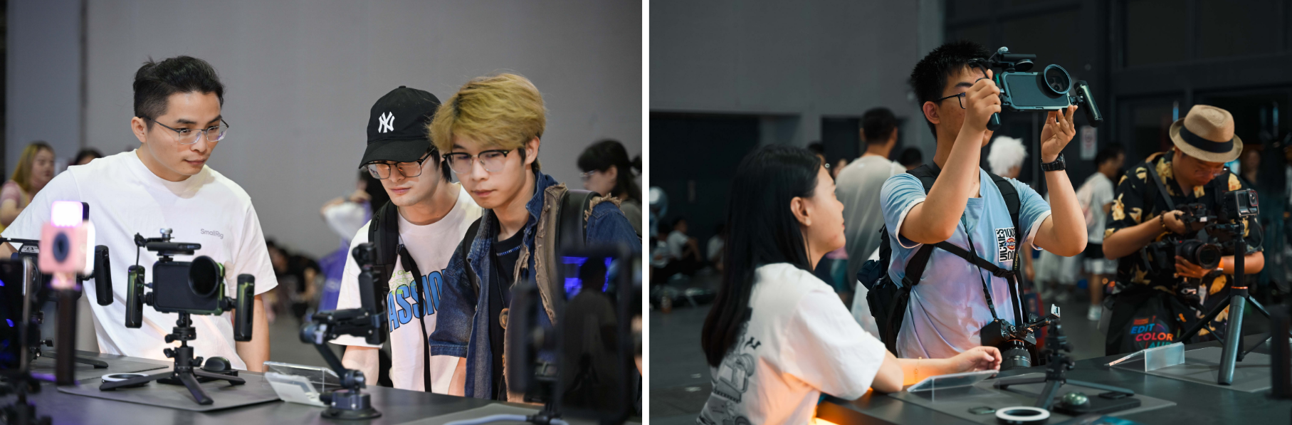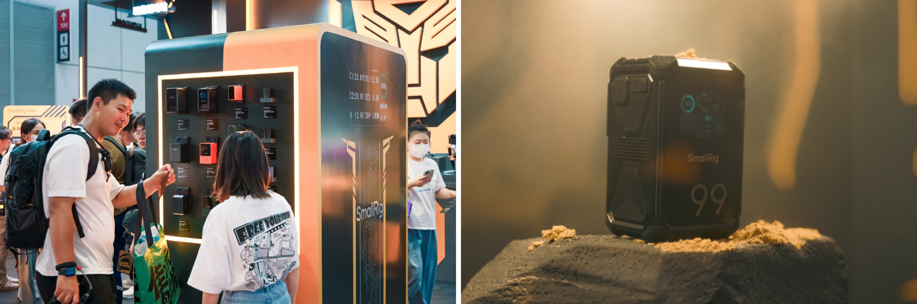在产品展示区,SmallRig斯莫格用带来的一系列产品打造了一座影像工作坊,三脚架、相机&手机拓展框、电池、补光灯等产品矩阵,为创作者带来专业影像拍摄方案。其产品策略清晰指向“专业创作便携化”趋势。