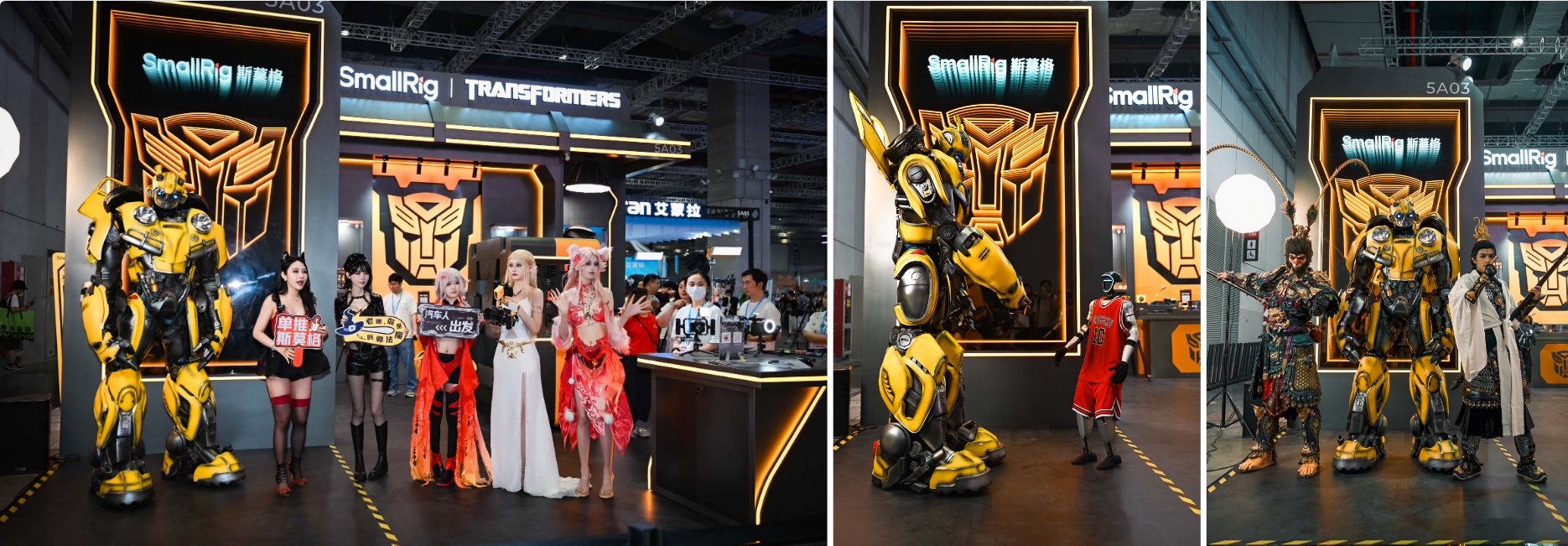 展会期间,影像器材厂商SmallRig斯莫格以“科技+IP”双驱动策略成为焦点。SmallRig斯莫格不仅通过变形金刚大黄蜂巨型装置吸引观众围观,更针对专业创作者带来了轻量化拍摄解决方案,展现出对移动影像市场的深度布局。