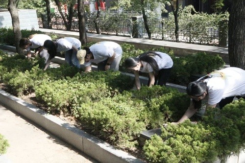 图为实践团成员开展陵园清洁与祭扫。山东理工大学林予淳提供