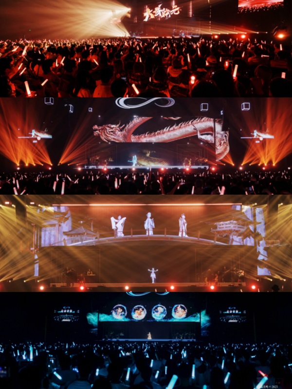 值得一提的是,本次演唱会依旧由新生代音乐鬼才Sihan担任音乐总监,他领衔了10位一线乐手团队,将30首+曲目精心划分为“二次元经典”“国风组曲”“摇滚燃曲”“情怀金曲”四大板块,演出以“70%经典重塑+30%新作首演”的创新架构展开,每组曲目仿佛化作主题乐园,呈现出截然不同又丰富的视听美学盛宴。