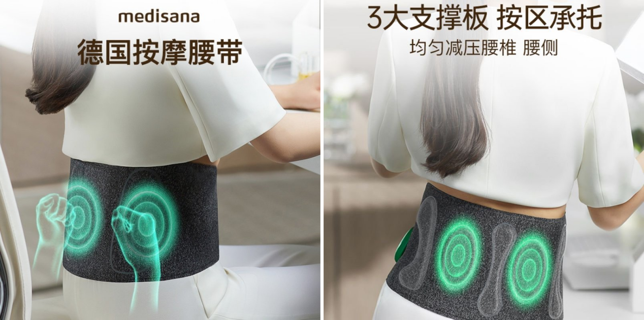 数据显示,一个人如果坐着或站立而导致腰部每天超负荷承压12小时以上,就会使得腰肌腰椎加速受损。暑假期间,不少学子选择打工赚外快,长时间的站立让腰臀和腿部肌肉常常处于紧绷状态,这时,medisana(马德保康)按摩腰带就成为缓解腰部不适的“好帮手”。medisana(马德保康)按摩腰带采用符合人体工学的设计,内置3大支撑板分区承托腰椎与腰侧,像无形的手均匀减压,改变传统支撑板易移位、减压不均的问题;创新一体化加压带更贴合腰部曲线,久戴不移位,支撑稳定。同时,其热敷功能通过14400mm²大面积秒速发热,3档温度暖透腰腹,远红外线深入肌肉促循环,缓解僵硬酸痛。