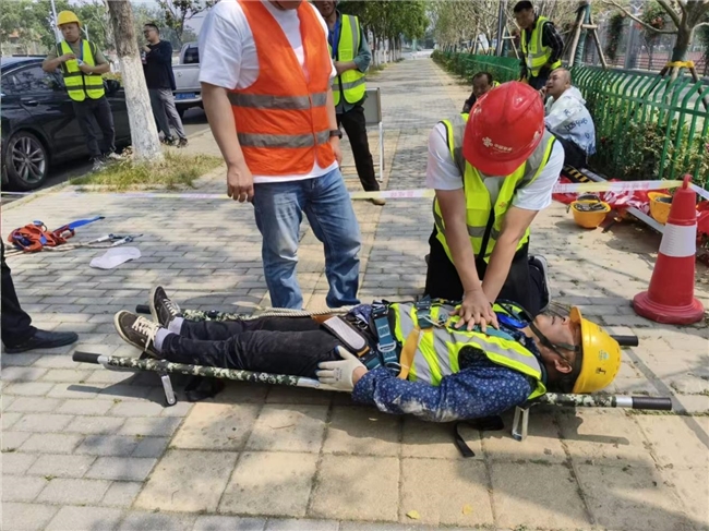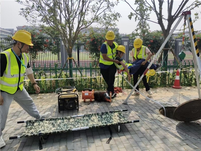 下井之前施工人员用专业仪器检测井下有毒气体情况,在井下施工过程中,一旦检测到突发紧急情况需要紧急救援,现场救援小组在确保自身和周边人员安全的前提下立即展开救援,在本次演练中经过紧急处置,施工人员得到及时救治,避免了人身伤亡事故的发生。
