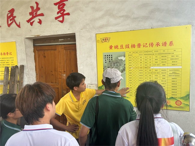 在第五代传承人杨师傅的带领下,实践团沉浸式体验豆豉古法酿造,杨师傅为志愿者详细讲述了杨晋记豆豉的传承历史及包含选豆、隔水干蒸、洗涤浸泡等十二道制作工艺,记录的16位传承人,在百年里时光里传承人用大国“工匠”精神将其发扬光大。