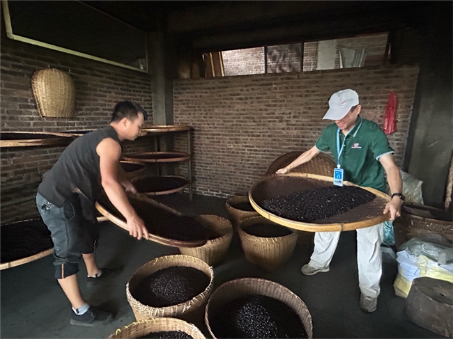 活动尾声,杨师傅捧出新酿豆豉感慨:“大学生用普通话帮咱把祖传手艺‘翻译’明白了!年轻人听得懂,电商销得远,这缸豆豉才算真正‘出圈’!” 最后实践团成员还体验了非遗豆豉里“簸豆”环节。