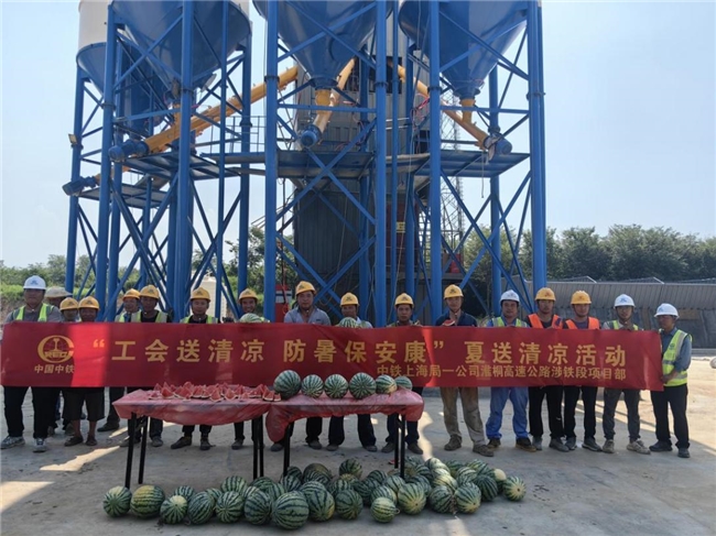连日来,合肥市持续高温,热浪滚滚,为进一步做好基层一线劳动者防暑降温工作,7月21日,中铁上海局一公司淮桐高速公路涉铁段项目部开展“工会送清凉 防暑保安康”夏送清凉活动,为奋战在高温一线的职工和产业工人送去了关怀与清凉。