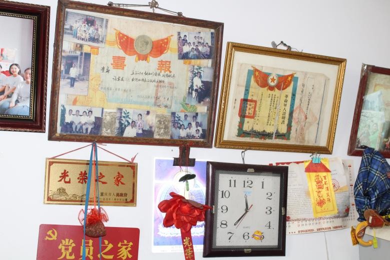 图为抗美援朝老兵获得的“光荣之家”等荣誉。简雨珍供图