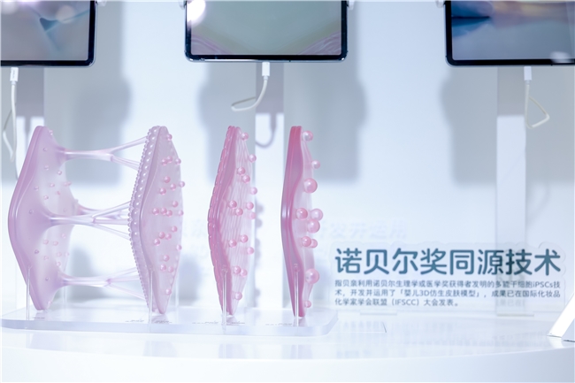 为了验证配方、成分和成品是否真的适合宝宝肌肤,贝亲还引入诺贝尔奖同源技术全球首创婴儿3D仿生皮肤模型。这个模型可以模拟婴儿皮肤特性,是产品安全性和功效性的科学评价体系。在展馆,贝亲的科学家们以影像及3D艺术装置的方式将“婴儿皮肤模型”带到了现场,为宝爸宝妈们生动科普婴儿皮肤特征和日常护肤科学理念。