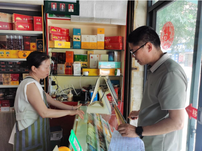 “多亏张经理帮我把柜台整理得这么整齐,还换了最新的标签,店里看着亮堂多了,昨天刚摆好就多卖了两包新品。”湖镇镇零售客户陈炳富一边给消费者扫码结算,一边笑着对前来核查的业务科人员陈英说道。