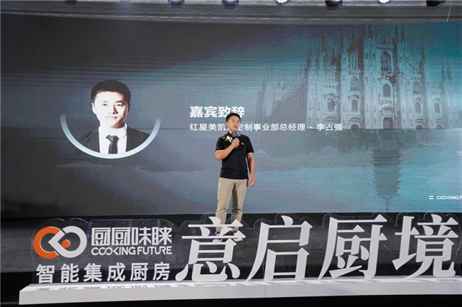 在嘉宾致辞环节,第六空间副总裁肖菁与红星美凯龙定制事业部总经理李占强,分别从高端定制服务与终端消费趋势切入,指出AI与设计力正共同重塑厨房场景,厨房正在成为链接艺术与生活的新介质。