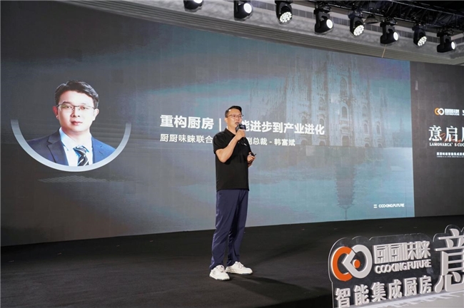 随后,厨厨味睐联合创始人/副总裁韩富斌以“重构厨房:从功能进步到产业进化”为题,全面解析厨厨味睐“集成化”战略的发展路径。从柜电一体、台面集成到管路整合,品牌正在推动厨房空间由“部件时代”向“成品时代”跃迁。