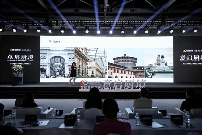 随后,意大利Lamonarca Design联合创始人、米兰理工大学教授玛利亚·玛泰丽雅带来“Lamonarca’s Cucina d’Autore | 意启厨境”的主题演讲,系统阐述全球厨房设计的新主张:亲近自然、可持续材料、家庭互动与简约美学,将成为下一阶段的核心趋势。由其团队打造的全新Milano系列产品,也在本次活动中首次亮相,充分融合不锈钢、意大利奢石、天然木材等经典材质,演绎出东方与西方美学交汇的极致空间表达。