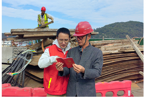 轰鸣的机器声与钢筋水泥构成了独特的背景音。在繁忙的建筑工地上,身穿红马甲的“香溢”志愿者们的身影,为这片热火朝天的景象增添了一抹别样的法治亮色。