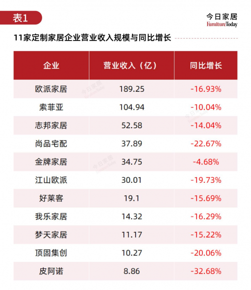 不过,市场环境的变化正引发行业格局的显著转变。2024年年报数据显示,11 家上市定制家居企业营收全面下滑,其中皮阿诺降幅最大,达32.68%,营收降至 8.86亿元。