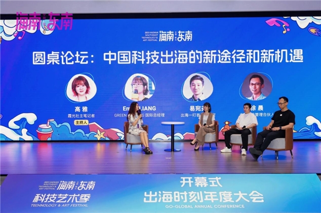 大会上,系列重磅环节精彩上演:围绕“资本助力中国科技出海”“中国科技出海的新途径和新机遇”等主题,华创资本投资合伙人熊伟铭、OPPO巡星投资总经理乔雨婷、GREEN FUNDING国际总经理Emily Liang等业内大咖展开圆桌论坛,为科技出海建言献策;海南东南之《有故事的海》国际播客季启动、《有故事的海》跨界对话、2025海南国际设计师大赛设计出海主题宣讲、海南清文雅音机器人产品亮相、动漫电影《黎锦奇缘》发布等环节,彰显“科技+文化” 的融合活力。
