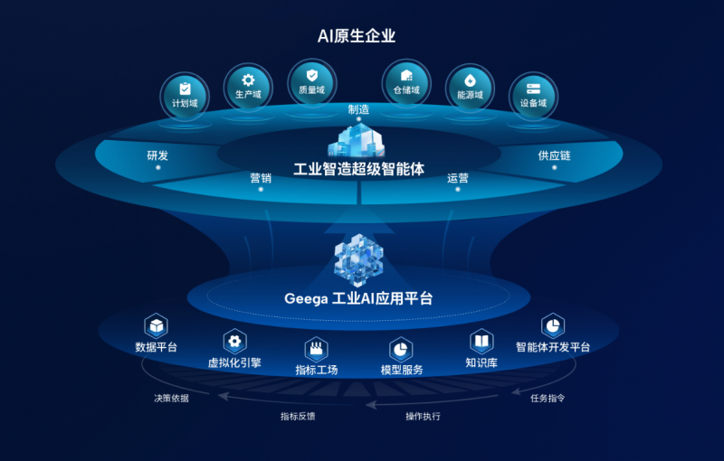 工业智造超级智能体,它并非单一模型,是基于Geega工业AI应用平台构建的覆盖企业“研、产、供、销、服”全链路业务场景的工业智能体矩阵,它们构成的协同决策网络将串联传统工业软件的流程断点,可实现工业场景“感知一决策一规划一执行”的全链路运营闭环和全流程自动化。其中的每一个小而精的智能体,都能深入垂直场景、贴近具体岗位、解决实际问题。