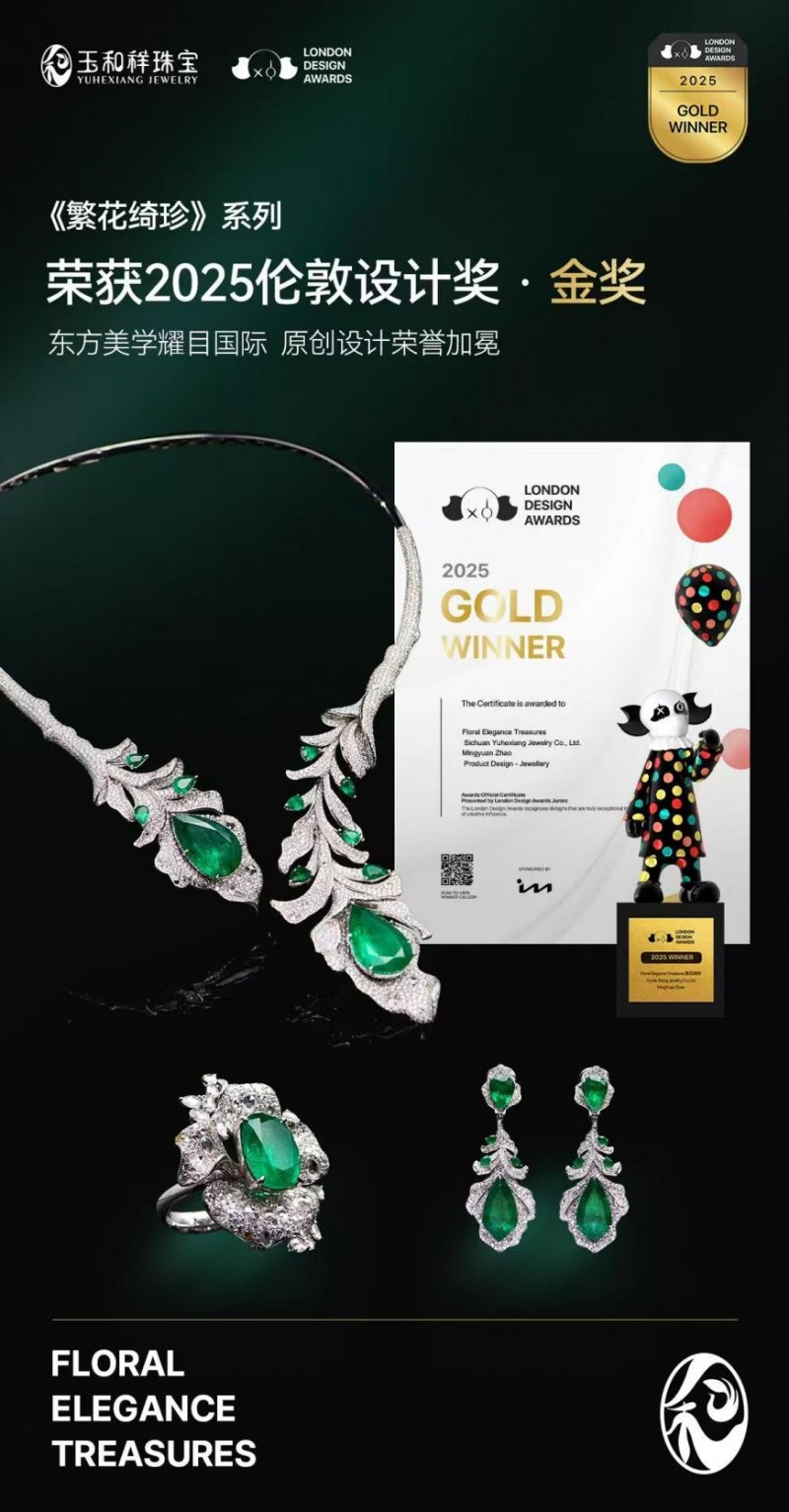 2025年7月,全球设计界瞩目的伦敦设计奖(London Design Awards)正式揭晓获奖名单。中国珠宝品牌【玉和祥】凭借翡翠套系《花舞颜语》系列与祖母绿套系《繁花绮珍》系列,以独特的原创设计从全球数万件作品中脱颖而出,双双斩获2025伦敦设计奖“金奖”。这一殊荣不仅是对玉和祥设计实力的国际认证,更标志着东方珠宝美学在全球舞台的璀璨绽放。