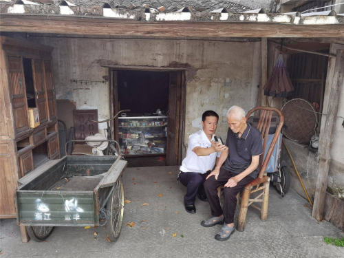 该局志愿者陈浩俯身凑近张大爷,一字一句慢慢说明来意:“张大爷,您那许可证快到期了,该续啦!现在手机上就能办,我教您用‘浙里办’吧,不用您来回跑!”