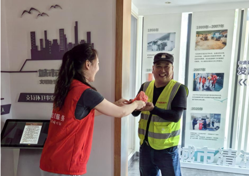 “大叔,你辛苦了,吃块西瓜降降温吧。”这天,香溢志愿者带着防暑用品来到安吉环卫事业驿站,向一名户外停车收费员大叔送上一块西瓜并说道,“大叔,现在正值酷暑,气温很高,你们在户外工作的时候一定要注意不能暴晒啊,要注意防暑降温,谨防中暑,要保护好自己的身体。”这位大叔双手接过志愿者送上的西瓜,脸上的疲惫瞬间被喜悦和感谢所替代。“谢谢你们对我们的关心,太感谢你们了!你们不用担心,热了我就去阴凉处下坐坐。”大叔笑着说道。