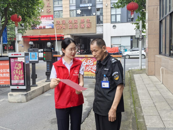 图为香溢志愿者金莎莎正在向群众宣传防火知识沈乐怡摄