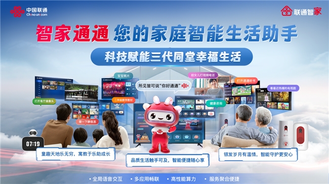 【智家通通:打造智慧家庭新生态】作为中国联通倾力打造的智能家居语音智控设备,“智家通通”以大屏终端为载体,通过AI助手无缝整合“影音、安防、娱乐、问答、游戏、健康、视讯、购物、办公”等功能,并支持方言识别,让智能设备突破语言壁垒,轻松满足全家多样化需求。此外,它还为长者提供贴心的语音交互,通过“所见即可说”轻松操控影音、听书、视讯和康养功能,让银发岁月更从容;为孩童打造寓教于乐的成长空间,涵盖同步课程、智能辅导和趣味互动游戏,让学习充满乐趣;为中青年带来高效便捷的智慧体验,无论是云盘存储、家庭看护,还是AI健身舞蹈,都能满足品质生活的多元需求,让每个家庭成员都能找到专属的精彩。