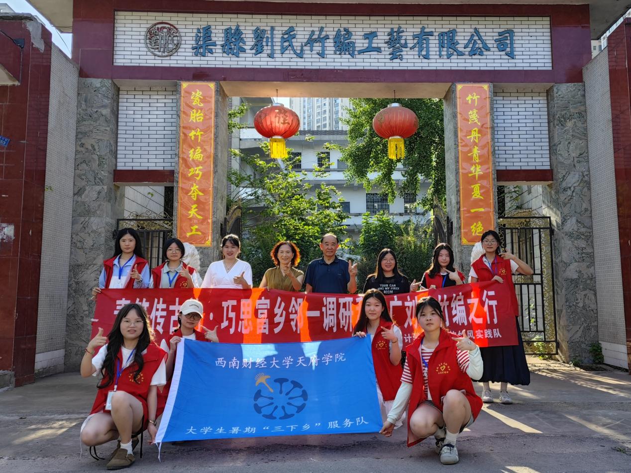 近日(7月8日至14日),西南财经大学天府学院会计学院绿韵竹风实践队圆满完成在四川省达州市渠县渠江街道、渠南街道南坝社区、渠县宝城镇青龙村以“非遗刘氏竹编调研推广与乡村振兴”为主题的暑期“三下乡”社会实践活动。从城镇街头的普及宣传到乡村田埂的走访调研,从非遗工坊的实践体验到新媒体平台的推广助力,队员们以扎实的行动丈量乡土,用青年的智慧为传统工艺注入活力,在实践中书写非遗赋能乡村振兴的青春答卷。