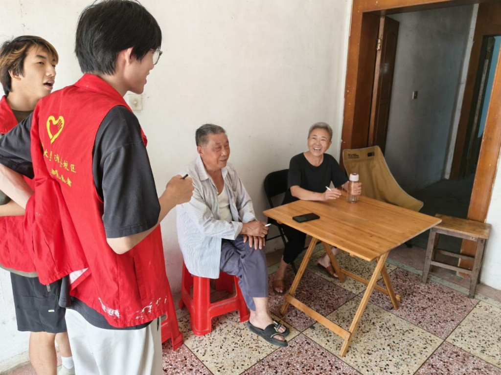 图为志愿者走访调研村情(摄影:郁嘉鸿)