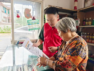志愿者们不仅发放安全手册,还现场指导零售户使用灭火器:“拔下保险销,握住喷管对准火焰根部,按下压把就能灭火。”零售户李大姐跟着练习了几遍,笑着说:“以前灭火器就放在那儿当摆设,现在学会了怎么用,心里踏实多了。”排查隐患、传授技能,志愿者们用细致的服务,让安全意识在零售户心里扎了根。