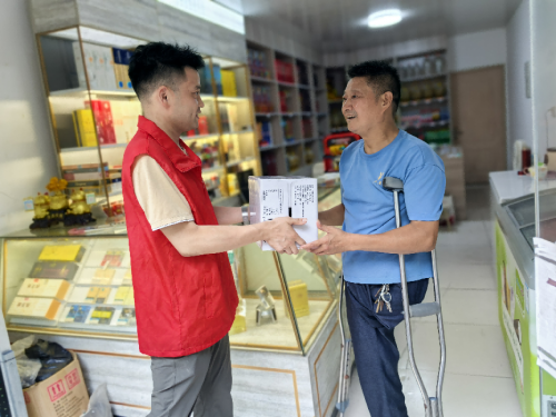王宇翔第一次见到严伏南时,发现仅仅是销售收银这么个简单的步骤,他都要忙活半天。每逢客人来买单,他总是拄着拐杖一瘸一拐地在柜台和收银台之间来回,短短几步路的距离要花费比常人多一倍的时间。日常的盘库工作也要消耗他很大的精力,常常在货架前一站就是一下午,期间时不时要停下歇息一会儿,不仅效率低,还总是累得小腿发麻,直不起腰。了解到这个困难,王宇翔帮严伏南申请了数采终端户,装起了扫码枪,让小店用上了香溢通2.0系统。
