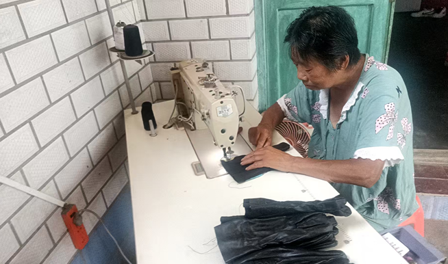 走进63岁的村民巩敬霞家中,她正坐在缝纫机前娴熟地制作劳保手套。只见她手指翻飞,不一会儿,一副结实耐用的劳保手套就完成了。“在家带孙子还能月挣1000多,这在过去想都不敢想。”巩大姐笑着说。