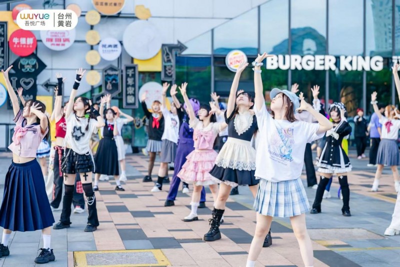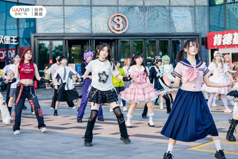 活动当天,黄岩吾悦广场大中庭成了宅舞爱好者的舞台,众多coser的加入让现场充满了“次元壁破裂”的惊喜。他们与其他参与者一同参与随机宅舞,音乐一响,大家便迅速进入状态,用流畅的动作展现对宅舞的热爱,每一个转身、每一个跳跃都充满活力,引得观众阵阵喝彩。
