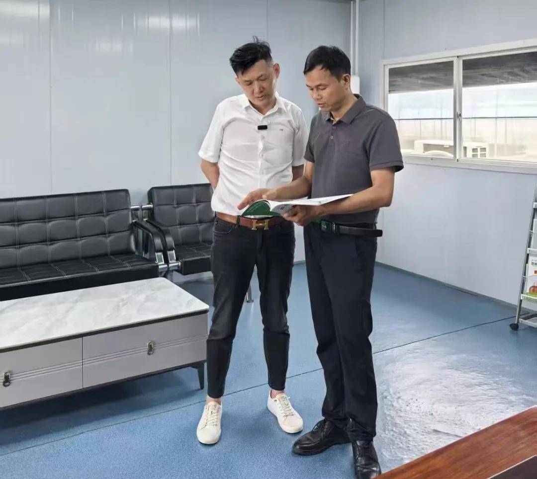 杨兴忠(中)在给调研团队讲解