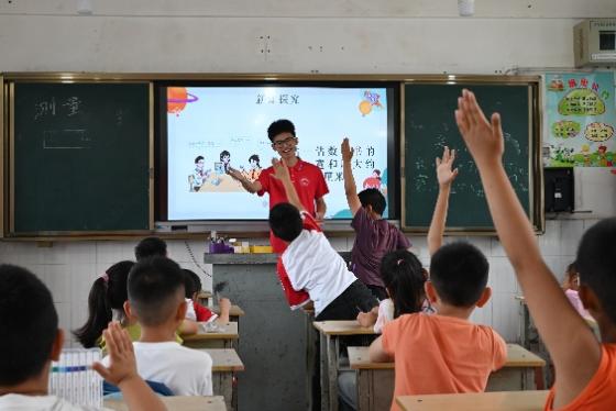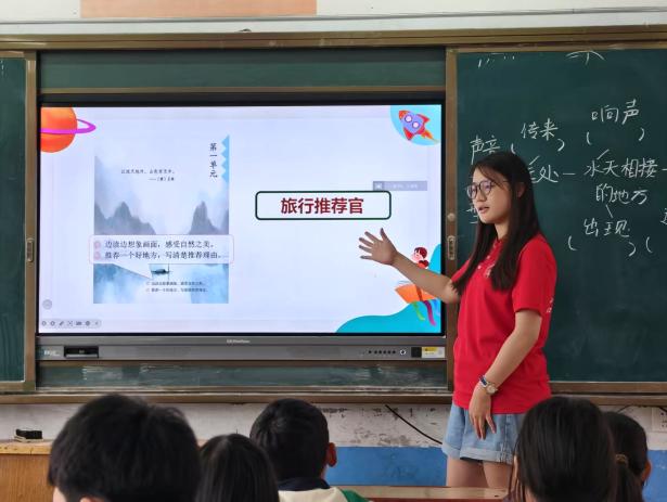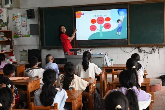 实践团通过寓教于乐的方式,将文化知识辅导生动融入游戏互动。教授知识涵盖多学科内容,助力孩子们培养探究兴趣,提升学习热情。冯蓉、颜裕、谢睿茜、杨谨睿、张瀚文、亢晓鹏、陈思言等实践团成员对接当前小学教育教学要求并结合地方办学特色设计了多个科目的文化知识相关课程。语文课以丰富互动解读习作与课文,让孩子们大胆表达自己的想法;数学课兼顾理论与动手操作,让知识在趣味中传递;英语课融合对话练习与英文歌曲,让英语学习变得轻松愉悦。多样的教学形式打破了传统课堂的束缚,让孩子们在轻松氛围中收获知识,更爱上了主动探索的学习过程。