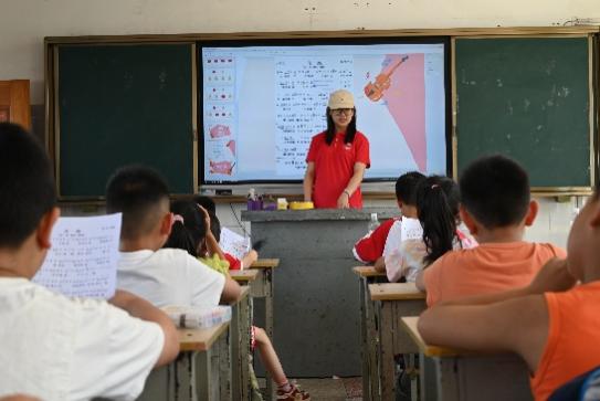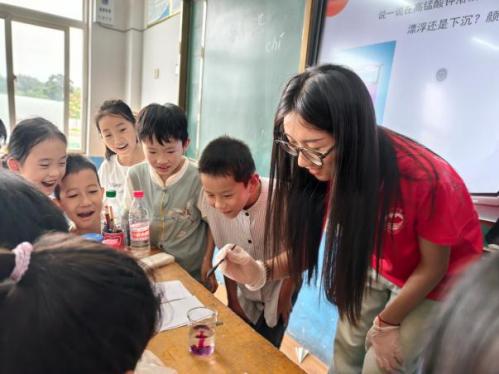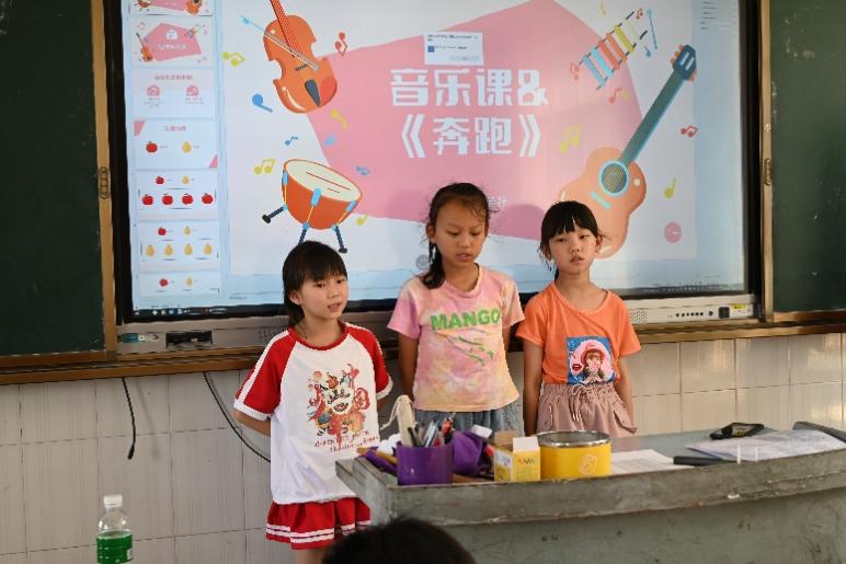 为促进孩子们全面成长,在传统的课本知识学习之外,实践团成员也充分发挥个人才能,设计并开展了音乐鉴赏、文艺汇演、科学实验、运动会等丰富多彩的课程活动。音乐课上,姜一诺和贾若梓将歌曲教学与游戏结合,《明天会更好》 《稻香》等旋律点亮了孩子们的笑容。科学实验课上,张雅淇、花晓蔓、马奕琳、刘禹岑分别设计了《不一样的溶解》 《火山喷发》 等实验,让孩子们在动手操作中认识科学原理,探索自然奥秘。多元课程熏陶与课堂教学两翼齐飞,既给孩子们带来了妙趣横生的假期体验,又促进了他们的全面协调发展。