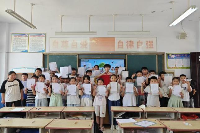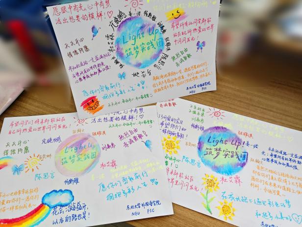从课堂上的智趣互动到操场上的欢声笑语,从环保创作中的奇思妙想到留言板上的真挚心声,东北大学Light Up 筑梦实践团的夏令营支教实践活动用真诚与创意为孩子们打开了更广阔的世界,点亮了他们的假期与童心。此次活动不仅丰富了乡村学生的假期生活,更在他们心中播下了热爱学习、崇尚科学、守护自然的种子。东北大学Light Up筑梦实践团将继续以实际行动践行社会责任,让“筑梦”在陪伴与成长中落地生根,书写“点亮”青春的动人篇章。(杨谨睿 张雅淇 程光升)