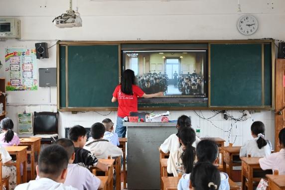 云南省腾冲市地处云南西部,毗邻缅甸,是滇西抗战的核心区域。河南省渑池县在抗战时期作为连接华北与中原抗战的“红色枢纽”,是中共在豫西的重要据点。两地均留存了大量的抗战遗址,切实见证了“一寸山河一寸血”的悲壮历史。立足两地丰富的红色文化遗址,李舒慧给五、六年级的学生带来了深刻的爱国主题教育。课堂从当地特色红色文旅切入,着重介绍了国殇墓园以及滇西抗战纪念馆,从而引入到对于我国抗战历史的深入介绍。从孩子们身边熟悉的历史片段开始教学,增进了孩子们的爱国情怀以及民族认同。