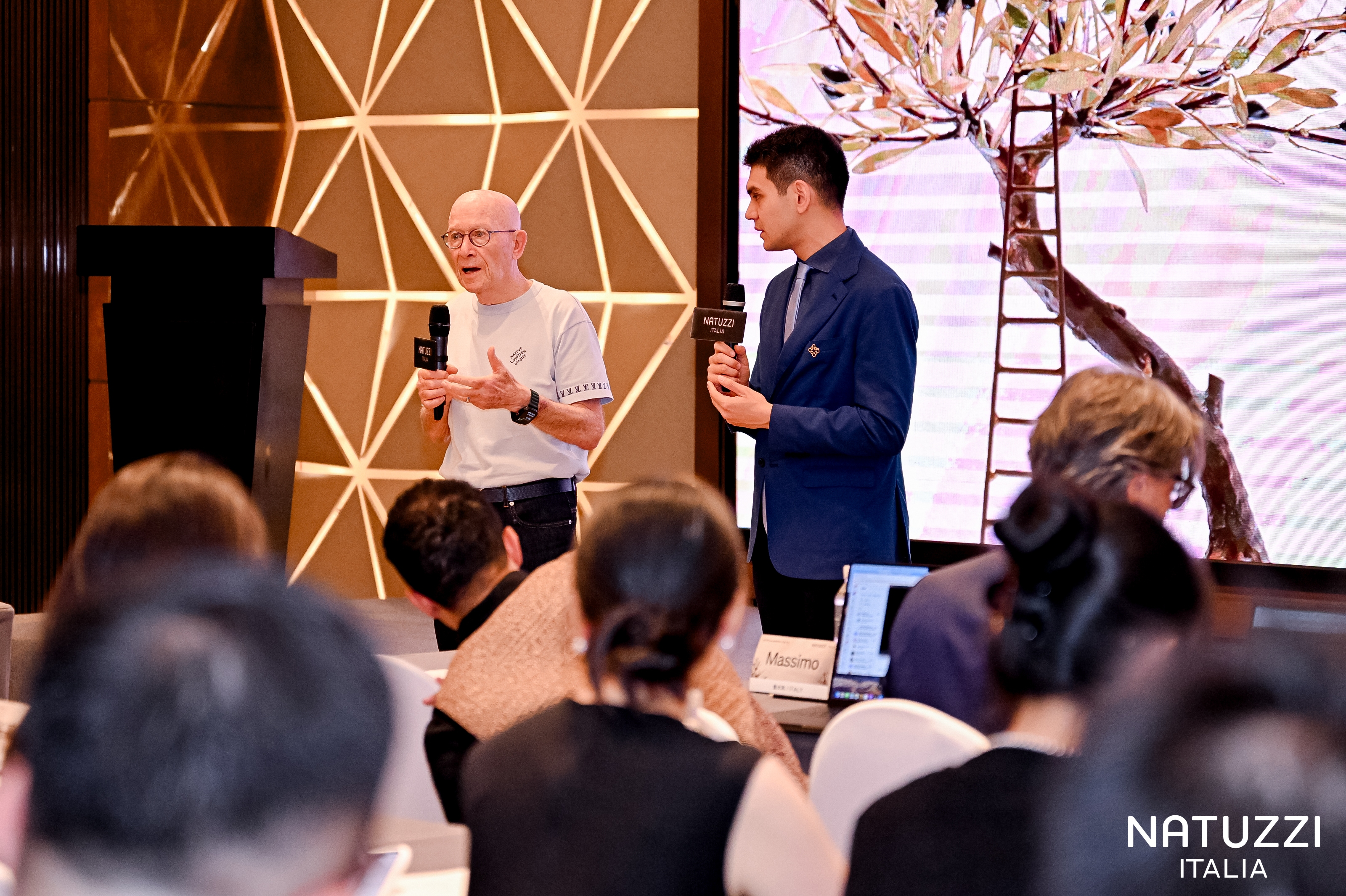 随后,中国意大利商会董事Davide Angelibusi登台致辞,他提到Natuzzi已连续两年斩获由中国意大利商会商会颁发的“金熊猫奖——意大利卓越奖”。“这一荣誉印证了Natuzzi在品牌管理、可持续发展及市场战略上的全面领先,”Angelibusi表示,“也在中国市场树立了可借鉴的意大利企业在华发展范本。”