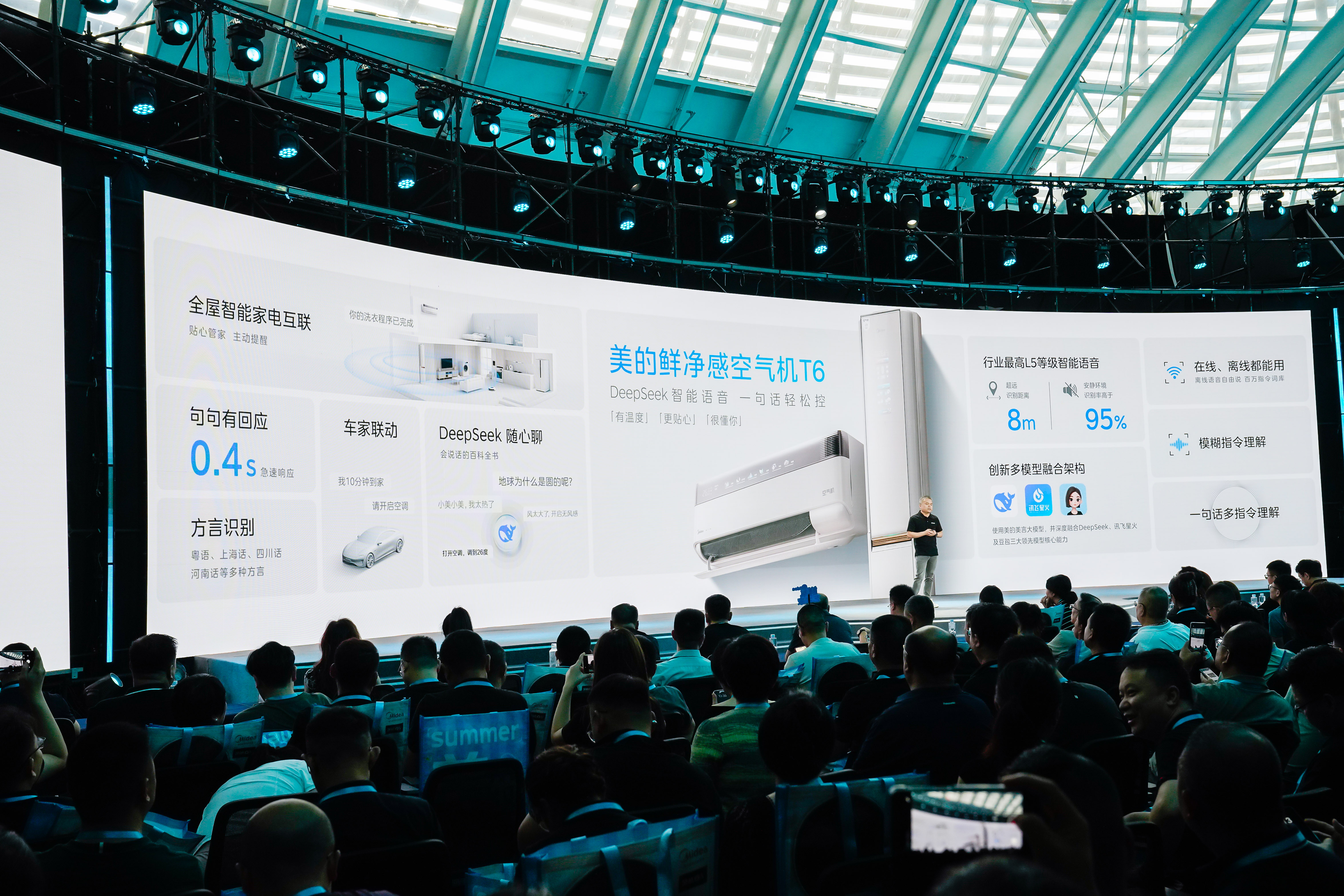 发布会现场,美的空调带来了多款重磅新品,涵盖从家用空调、中央空调到全屋智能生态的产品矩阵。