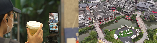 在梧田老街,电信5G-A 网络正助力商户和游客畅享智慧生活。游客可以随时随地快速地分享探店打卡的高清视频和照片。商家则借助电信5G-A 网络进行流畅的直播,更低的时延和更稳定的网络,让直播画面清晰流畅,有效提升了店铺的知名度和销售额。