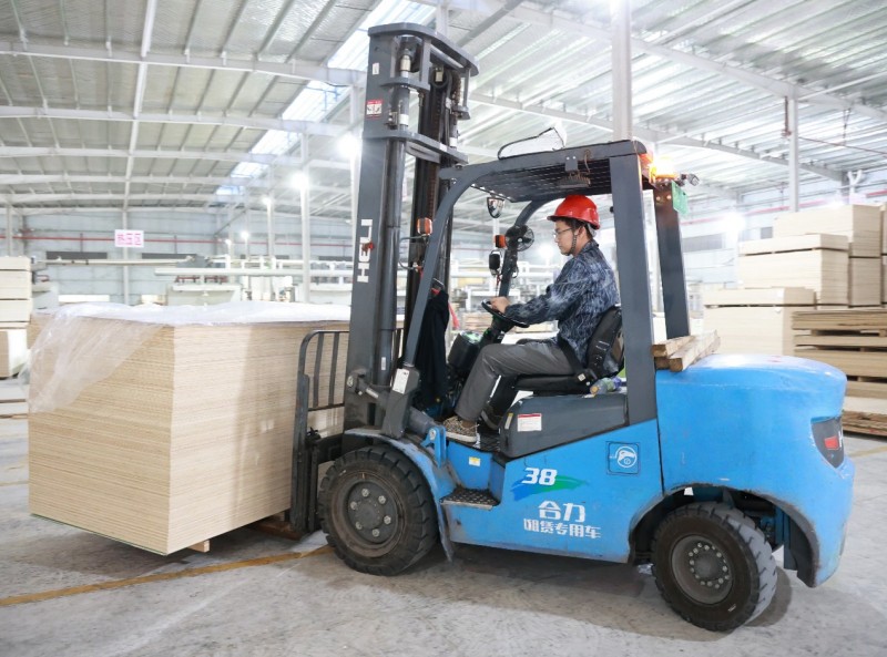 七彩美连木业生产负责人表示:“我们2019年建厂时就确立了‘环保立企’的发展理念,选择合力新能源叉车,正是因为其零排放、低能耗特性与我们的品牌理念高度契合。”作为专业从事生态板研发生产的企业,其从原料到成品的每个环节都贯彻环保标准。合力锂电叉车的应用,彻底解决了传统内燃叉车在1万多平方米生产车间产生的尾气污染问题,使车间作业环境得到显著改善。