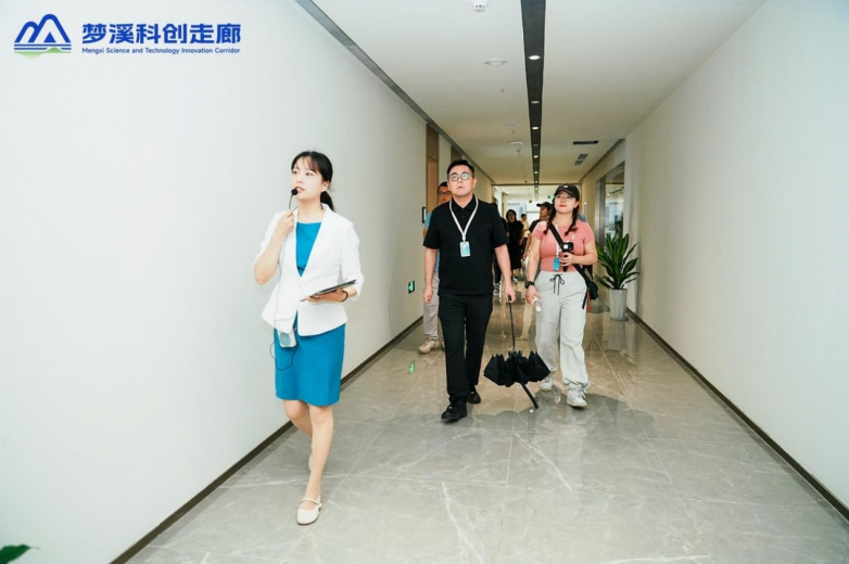 切换到员工端,工作人员展示着他的手机,给我们一一举例:预定会议室、报事报修、智慧停车、智慧客访等在这里只需要一次屏幕滑动。体验过这些数字化平台后,让大家对梦溪科创走廊的“数智化管理”有了更直观、深刻的认识,真正让“生产场景”与“生活场景”无缝衔接,用科技让服务触手可及。