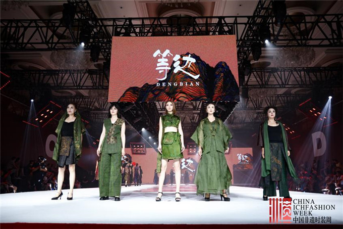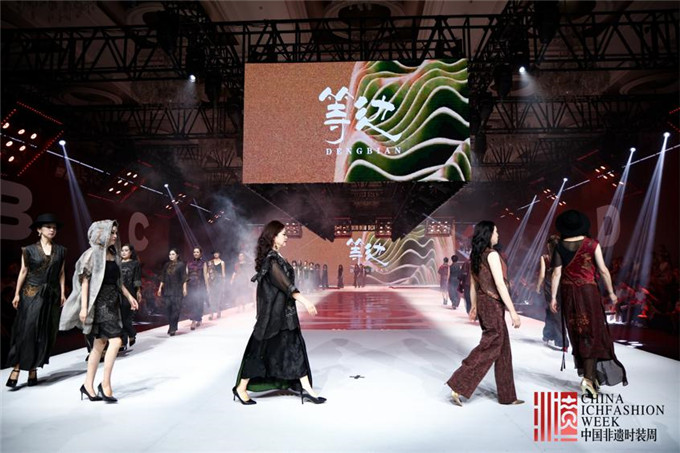 活动现场高潮迭起,来自全国的数十个非遗服饰品牌轮番登场,将地方特色与民族风情铺陈于T台之上。在成衣专场,南京品牌“花间赋”带来的新中式设计,在传统意境中巧妙融入当代审美语言,成为全场瞩目的焦点;而“等边服饰”呈现的香云纱系列,则以其独特的染整工艺和面料质感,生动诠释了民族非遗技艺的恒久魅力与创新活力。