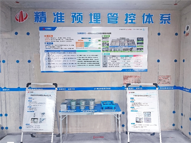 4、工业建造,打造过程精品。项目全面应用铝合金模板、爬架、装配式PC等工业化建造体系,通过标准化设计、工厂化生产、装配化施工推进建筑工业化。设置机电一站式配送基地,依托数字化BIM技术对机电图纸全面深化优化,精确拆分标准构件,通过集中加工、仓储、分拣、配送,输出标准部品306项。项目制定了质量、安全管理印章上墙制度,实现各处质量安全数据实名“上墙晾晒”,通过项目现场每层墙面的专属“成绩单”,更有效控制现场施工质量安全,做到精细化管理,提质增效。