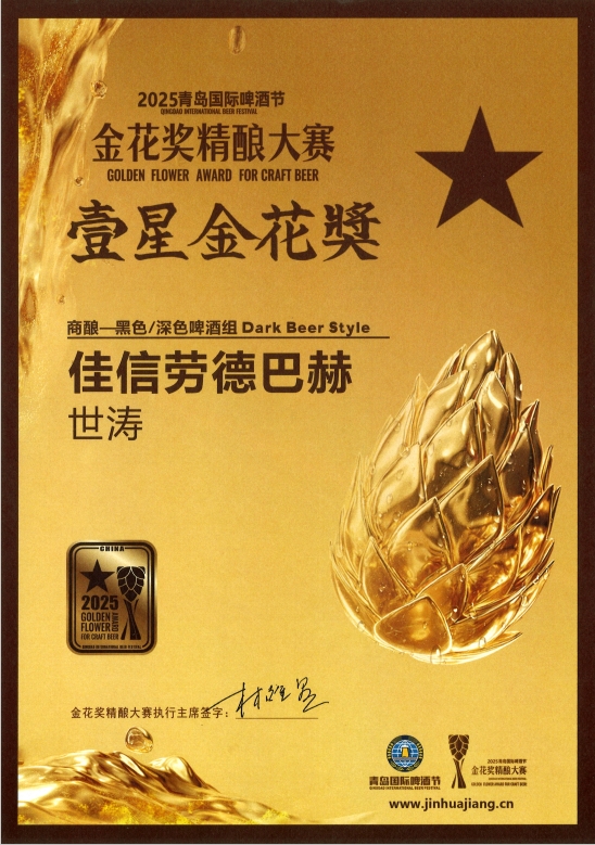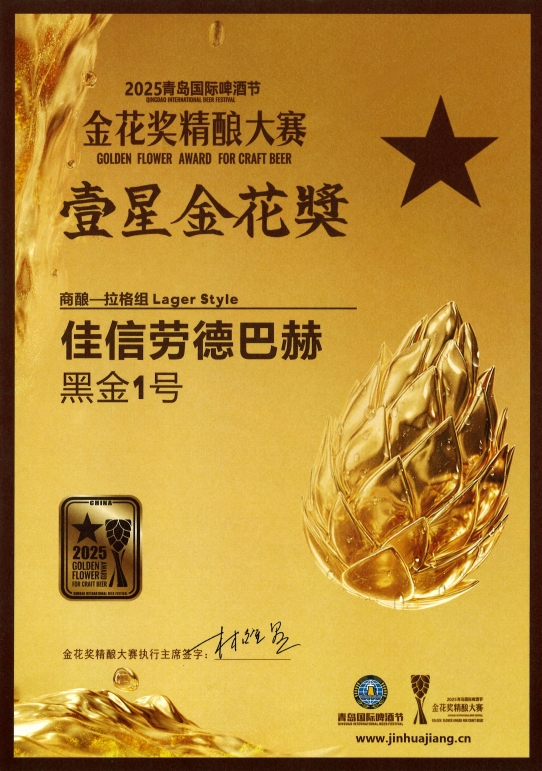 在2025青岛国际啤酒节金花奖精酿大赛评选中,中国精酿啤酒品牌佳信劳德巴赫旗下两款力作——黑金1号与世涛精酿,从全球417个品牌、2017款参赛产品中脱颖而出,分别斩获商酿拉格组壹星金花奖和商酿黑色/深色啤酒组壹星金花奖。这两项国际级荣誉,不仅彰显了品牌卓越的酿造实力,更标志着中国精酿啤酒在经典传承与风味创新领域达到崭新高度。