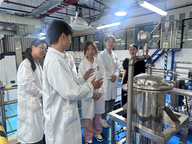 图一 殷逍遥(左二)为光伏专家介绍制备流程