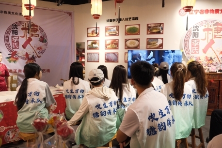 走进沈阳李氏糖人基地,团队成员们围坐观看专题视频。随着画面推进,大家深入了解到李氏糖人独特的技艺体系——制作技法分吹、塑、画三大类,且不同技法对应不同糖原料:吹糖人以麦芽糖、冰糖为主,塑糖人靠饴糖、冰糖塑造可长期保存的造型,画糖人(即糖画)则多用砂糖、冰糖,将中国传统文化融入勺间糖画 。直观的视频讲解,让非遗知识不再晦涩,让同学们沉浸式触摸到糖人技艺的传承脉络。