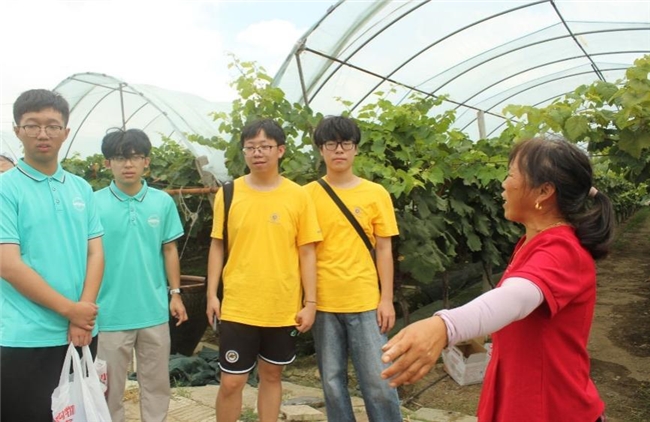 图4 农户曹阿姨为团队成员讲解种植用水等问题