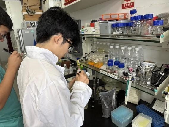 图7 团队成员在合工大食品楼实验室对所取水样进行处理